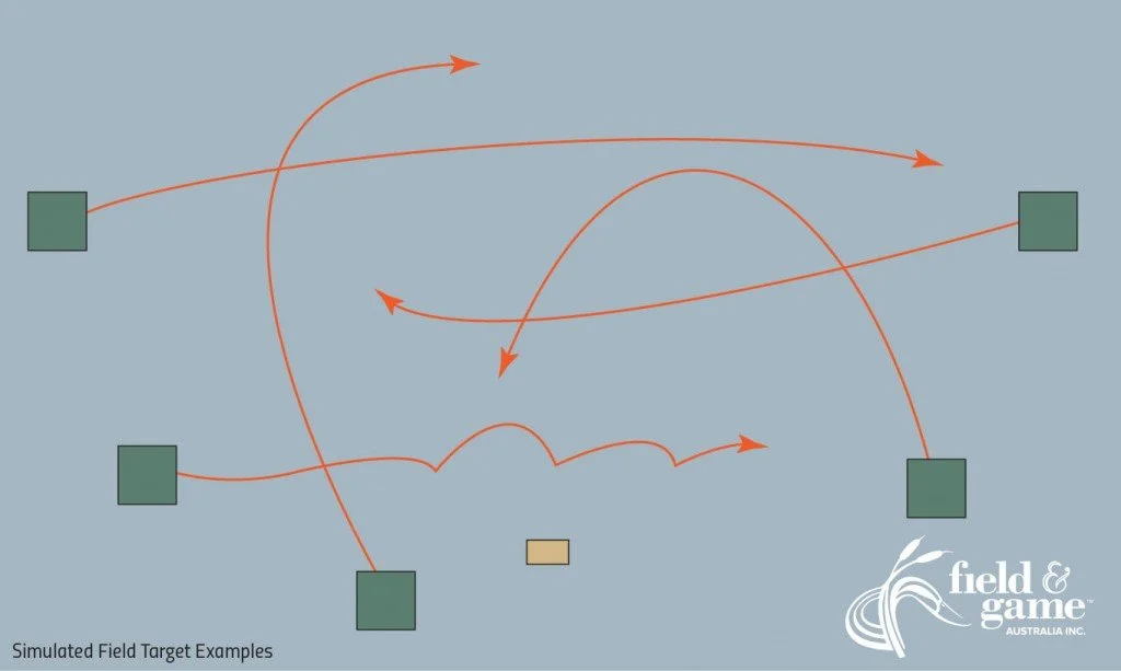 Simulated Field targets can be thrown from all sorts of positions, with all sorts of trajectories. Shooters will never experience the same set of targets twice, even at the same Field & Game Australia range. As they are emulating game animals, variation and diversity is key for a set of good simulated field targets. This same variation and diversity keeps the sport interesting.